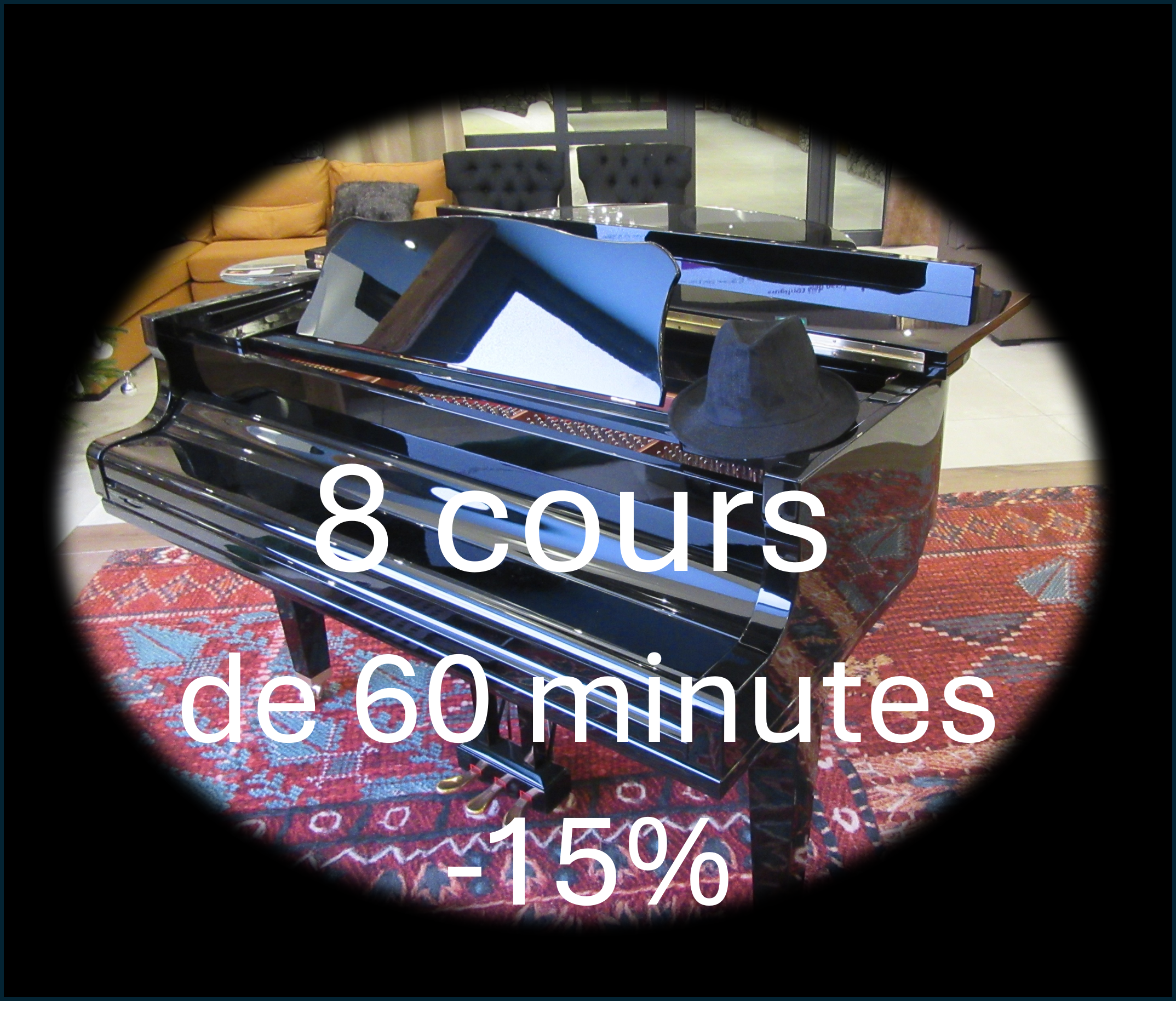 / 8 Cours de piano d’une heure pré-achetés (réduction 15%, €40,80 par cours)