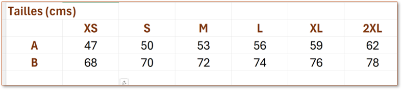 Tailles: XS, S, M, L et XL.