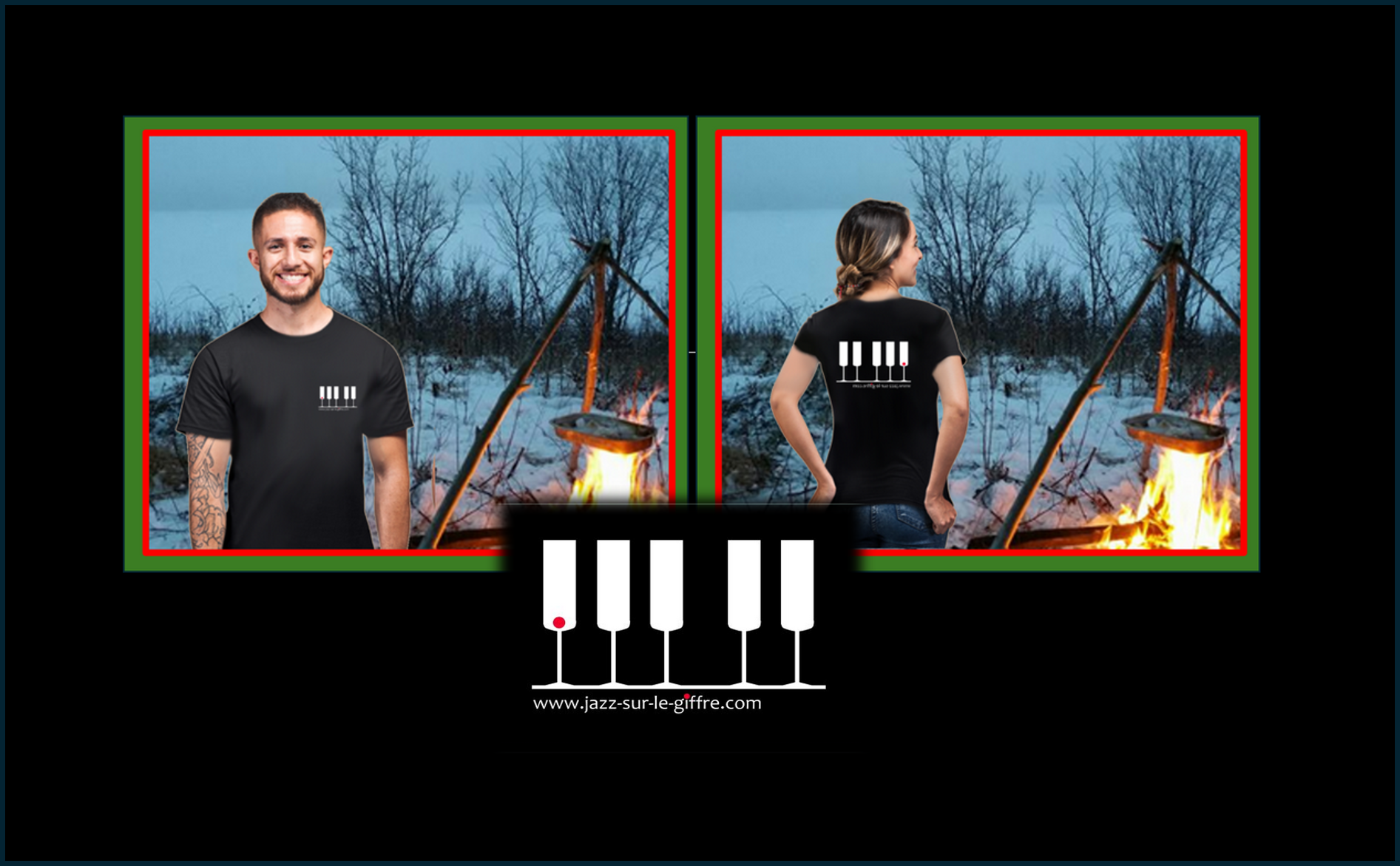 Matériel: 100% coton*,185 g/m², pré-rétréci à fil de chaîne continu (ring-spun), avec le logo Jazz-sur-le-Giffre imprimé devant et arrière
